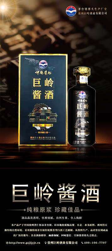 貴州巨嶺酒業(yè)有限公司,座落于聞名世界的古鎮(zhèn),國酒之鄉(xiāng)“茅臺鎮(zhèn)”。與“國酒茅臺”共享得天獨厚的氣候、土壤、水源、以及微生物群等自然資源;《巨嶺酒業(yè)》老作坊前身“巨嶺燒坊”,經(jīng)過多年的傳承,秉承先輩們代代相傳的古法釀造工藝,歷經(jīng)幾代人的延續(xù)和釀酒發(fā)展,奠定了《巨嶺酒業(yè)》發(fā)展的堅實基礎(chǔ)。 作為貴州茅臺鎮(zhèn)本土規(guī)模企業(yè),《巨嶺酒業(yè)》擁有傳統(tǒng)發(fā)酵窖池200余口,年產(chǎn)優(yōu)質(zhì)醬香白酒近2600多噸,儲酒能力12000多噸;并配有3條現(xiàn)代化包裝生產(chǎn)線;公司現(xiàn)有職工300多名,有釀酒師15人,技術(shù)人員22人,本科以上學(xué)歷管理人員12人,大專學(xué)歷工作人員78人,是茅臺古鎮(zhèn)醬酒傳承的白酒知名企業(yè)。 《巨嶺酒業(yè)》勵精圖治與精益求精的發(fā)展理念,已成長為行業(yè)認可、社會公認的“規(guī)模釀酒企業(yè)”,酒業(yè)協(xié)會副會長單位”和“愛心企業(yè)”。 公司現(xiàn)在擁有:《巨嶺醬酒》,《嶺臺》,《玉嶺燒坊》,《酒緣》《情滿壺》等上百個品牌產(chǎn)品,公司注重品牌發(fā)展,以《巨嶺醬酒》為品牌核心,以個性化定制和尊貴封藏為營銷模式,制定出“一核兩柱”的銷售模式。《巨嶺醬酒》作為品牌主體,做擴展市場的排頭先鋒,全國布局,點線結(jié)合,網(wǎng)狀布局,包括《巨嶺》系列產(chǎn)品.... |